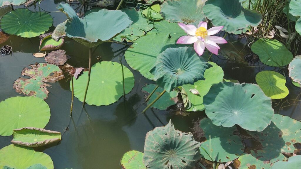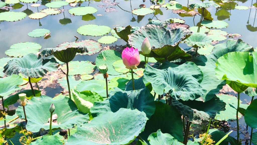 Al bajar puedes entretenerte paseando entre los lotos, no es lo mismo, pero vale.