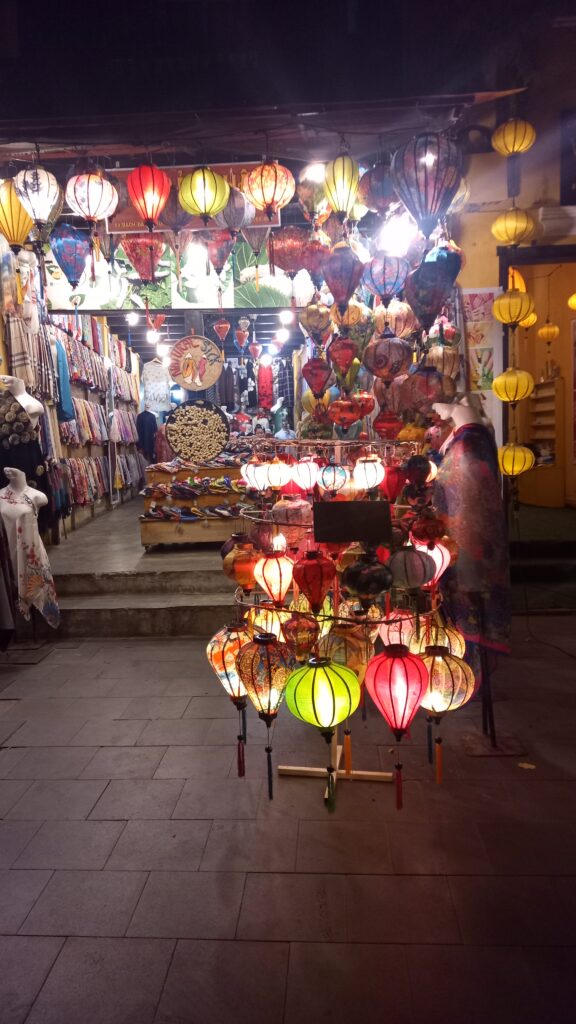 Tras el café seguimos caminando hasta el centro de Hoi An, empezaba a anochecer, y nos apetecía dar un último paseo por la noche por la ciudad, volver a ver las calles iluminadas, sus farolillos y sus mercadillos, y los puestos de comida, que son un clásico.