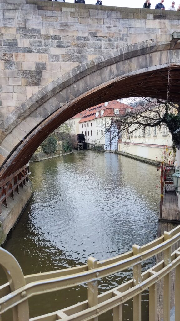 Cuando te pierdas por sus calles vas a encontrar imágenes como esta, estábamos regresando de nuestro paseo por el metrónomo, íbamos a subir al puente Carlos para cruzarlo por fin, y lo vimos desde abajo.