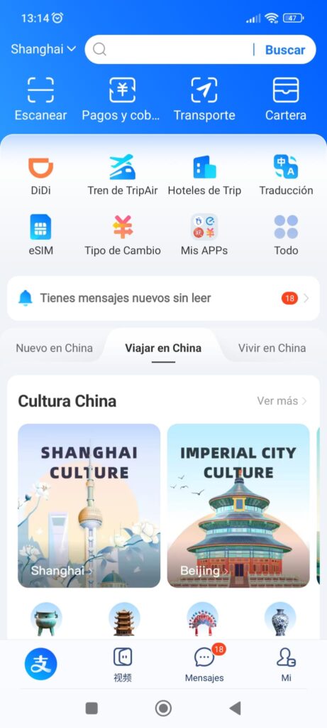 Alipay es la plataforma de pago de la empresa Alibaba, también propietaria de la conocida Aliexpress. Está disponible para instalar en Google Play o App Store. Tras instalarla en tu movil, tendrás que crear una cuenta asociada a tu número de teléfono y verificar tu identidad a través de fotografías tuyas, de tu pasaporte y rellenar algún que otro formulario. Es tedioso, pero es normal, ya que China tiene un control férreo del blanqueo de capitales.