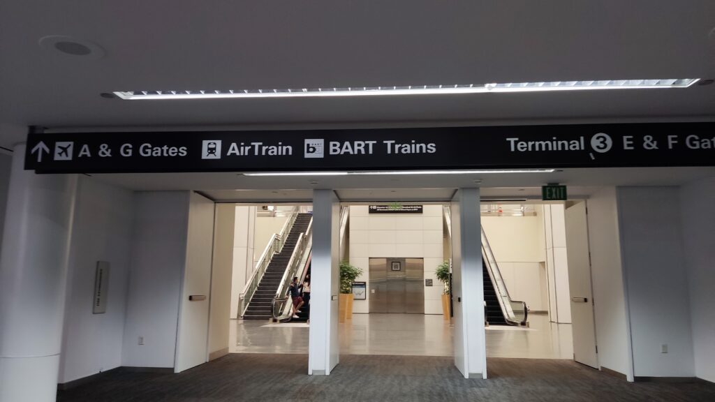 El metro BART es la opción más rápida, en menos de 30 minutos llegas al centro, la parada de metro está en la terminal internacional G, por lo que si llegas desde España no tendrás que moverte de la terminal, no coger el AirTrain, que es el tren que conecta las terminales dentro del aeropuerto. Cuando salgas del control de pasaporte, sin salir del aeropuerto, sigue las señales: