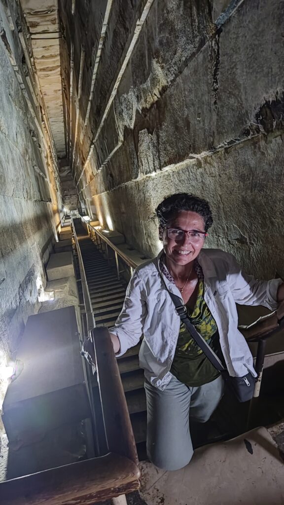 El acceso a la Gran Pirámide es relativamente sencillo, nos habían comentado que era agobiante y claustrofóbico, pero no me resultó nada de eso. El calor y la humedad era considerable. Cuando llegas al final hay un sarcófago de piedra, donde estuvo enterrado el faraón. No hay pinturas ni nada parecido a las tumbas que ves en el Valle de los Reyes y Reinas de Luxor. Pero mereció la pena con creces.