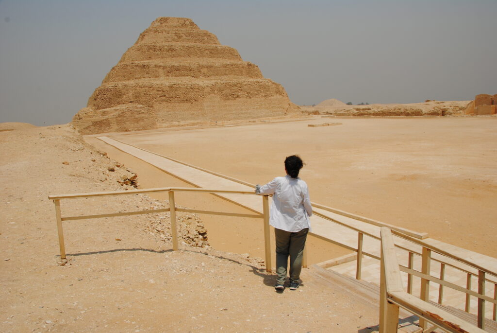 Terminamos el recinto de Giza y con pena nos despedimos de las impresionantes y enormes pirámides, subimos al coche para hacer la siguiente visita, la pirámide Escalonada de Zoser es la más antigua, esa sí que la disfrutamos en solitario. A esta pirámide no se podía acceder en ese momento. Solo podías disfrutar el exterior. Esta fue la primera pirámide del mundo.