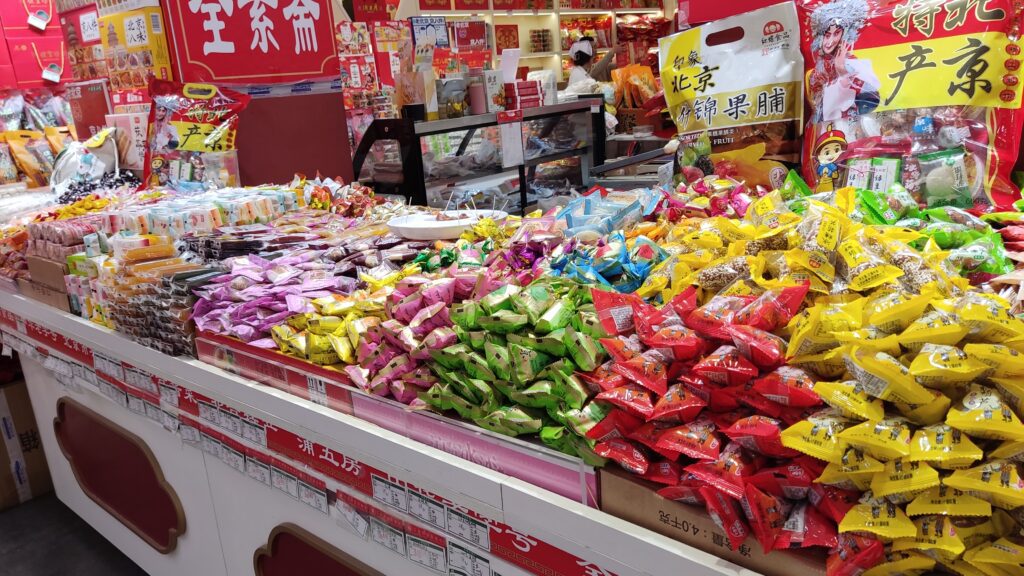 Y por la tarde noche, un poco de caos y comida. Wangfujing es la calle comercial por excelencia de Pekín: tiendas internacionales, tiendas de dulces, de donde solo con mirar tienes una subida de azúcar, y todo lo que te puedas imaginar.