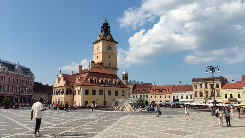 Siguiendo nuestro paseo nos encontramos con la Plaza del Consejo (Piața Sfatului), es el corazón del casco histórico. Aquí. en el centro encontramos la antigua Casa del Consejo, hoy convertida en museo, que domina el espacio con su torre del reloj. Hoy la plaza sigue siendo un punto de encuentro vibrante, llena de terrazas, cafés que la convierten en un lugar perfecto para disfrutar del ambiente local.