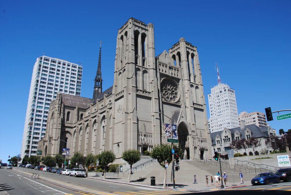 De ahí seguimos nuestro paseo hacia el barrio de Nob Hill, donde está la Cathedral Grace, que a mí me recordó, por su forma, a Notre Dame de París. La entrada es gratuita.