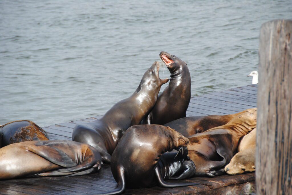 Fuimos paseando al Pier 39, a conocer a los habitantes más monos y simpáticos del puerto, los leones Marinos. El día acompañaba, hacía fresco, pero estaba soleado, así que nos dejamos llevar por estos hipnóticos bichos, se nos pasó el rato sin apenas darnos cuenta.