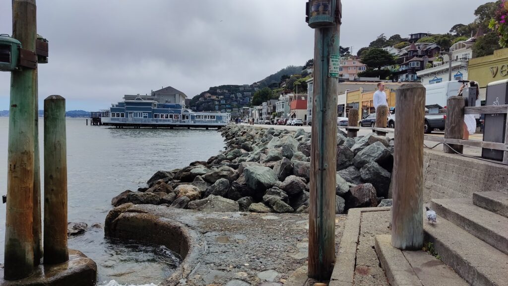 Desde ese punto, fuimos a la parada del bus 130 que nos llevó a Sausalito, y donde pudimos usar el ticket con saldo remanente del autobús que nos llevó a la entrada del Golden Gate. Sausalito es un pueblecito que se me antoja muy romántico y con un encanto especial, a mí me recordaba a los pueblos costeros que salen en las pelis de sobremesa de los sábados por la tarde. Cuando llegas y te bajas del bus vas caminando, dando un corto paseo al borde del mar y sin darte cuenta llegas a calles con cafeterías y tiendas con un toque bohemio. Estuvimos un par de horas paseando por sus calles y disfrutando las vistas.