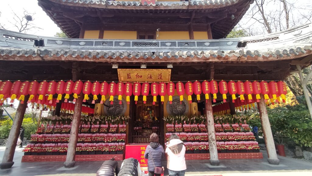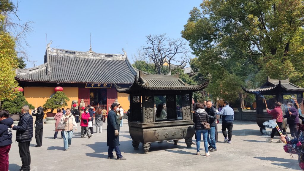 Lo que hace tan especial al Templo de Longhua es que no es templo de visita, que también, sino que es un templo vivo. Tuvimos la suerte de presenciar una ceremonia, escuchamos los cánticos de los monjes en la ceremonia, vi a personas mayores rezar con devoción y a jóvenes encender inciensos pidiendo suerte.