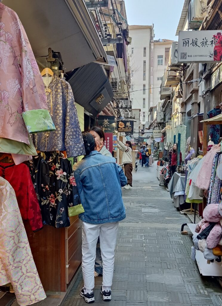 Este barrio, Tianzifang, o la antigua Concesión Francesa, es una zona con espíritu bohemio, donde se supone que vamos a encontrar la mezcla, el arte contemporáneo con la vida tradicional de barrio, en estos callejones puedes encontrar desde ropa hecha por diseñadores locales, inspirada en la tradicional pero de uso corriente, cerámica pintada a mano, hasta joyas de diseño diseñadas y hecha por locales.
