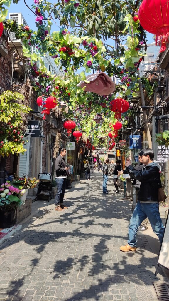Tianzifang, o la antigua Concesión Francesa de Shanghai, es un barrio con callejones, que a mi de primeras me dejó bastante fría. Creo que con el paso del tiempo ha perdido un poco su esencia. Actuamente las viejas casas Shikumen han sido transformadas en estudios de artistas, galerías, tiendas de artesanía y cafés alternativos, de precios elevados para los que estábamos encontrando a lo largo del viaje, y el otras zonas de Shanghai, como los restaurantes en calles como Nanjing Road.