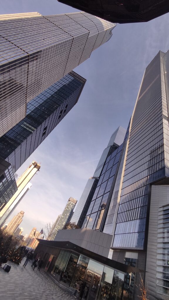 Paseamos y caminamos hasta que se acercaba la hora de visitar el primer mirador, el Summit One Vanderbilt. El Summit es uno de los últimos miradores que se ha abierto, es un edificio que tiene 427 metros de altura, visitamos las plantas de la 57 a la 59 donde, aparte de las vistas que son espectaculares, de verdad, también tienen cositas interactivas para entretenerte. Lo primero que ves al subir, salir del ascensor y dirigir tus pasos por un corto pasillo es una sala con unos ventanales enormes donde el sol te deslumbra, te dan unas gafas de sol, los ventanales llegan del suelo al techo, es un espectáculo, si tienes vértigo lo puedes pasar un poco regular. Te dan una funda para que pongas los pies, así que todo está muy limpio.