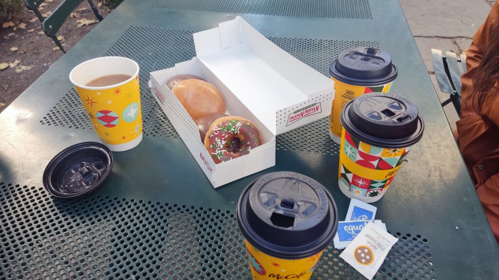 Nos tomamos un café y unos donuts en un parque. Y seguimos maravillándonos con lo que nos rodeaba.