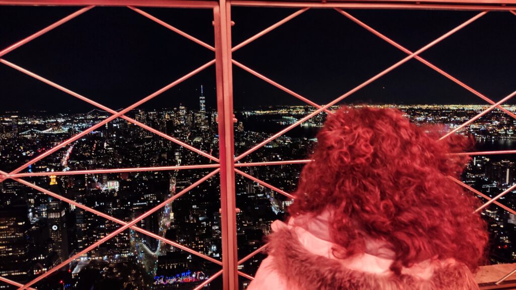 Te quedas ensimismado con las vistas, empiezas a reconocer edificios, el día estaba claro y se veía perfectamente, y cuando ya lo has visto y te has recreado te das cuenta de que todo el mundo está buscando la foto perfecta, los abrigos y bolsos van al suelo, y a posar. Nosotros lo rebautizamos, «El mirador del postureo». Vale, yo también me hice la foto. Te vas a hacer la foto de pie, con el edificio Chrysler al fondo, te la vas a hacer sentada, intentando que no se vea el marco de la ventana, te estorbará la gente, y repetirás …. Así hasta que creas que tienes la foto perfecta, por eso lo llamamos el mirador del postureo. Reconocer que las vistas son espectaculares, y las fotos quedan chulas de verdad.