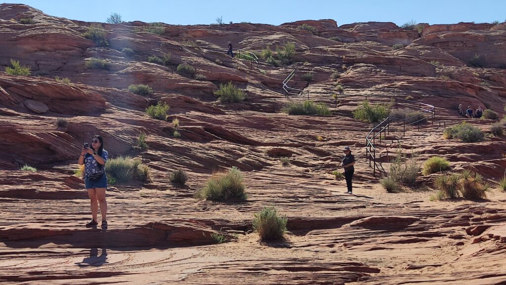 Seguimos hasta la siguiente parada, Glen Canyon Overlook, donde aparcamos el coche en el parking, tanto el parking como la visita de la zona son gratuitos, y seguimos el sendero de escaleras que bajaban por el barranco.
