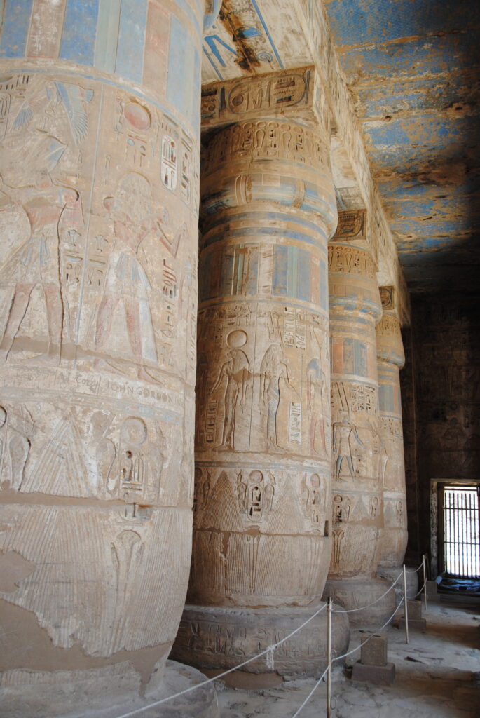Tiene tres salas hipóstilas, y en una de ellas los colores están muy bien conservados.