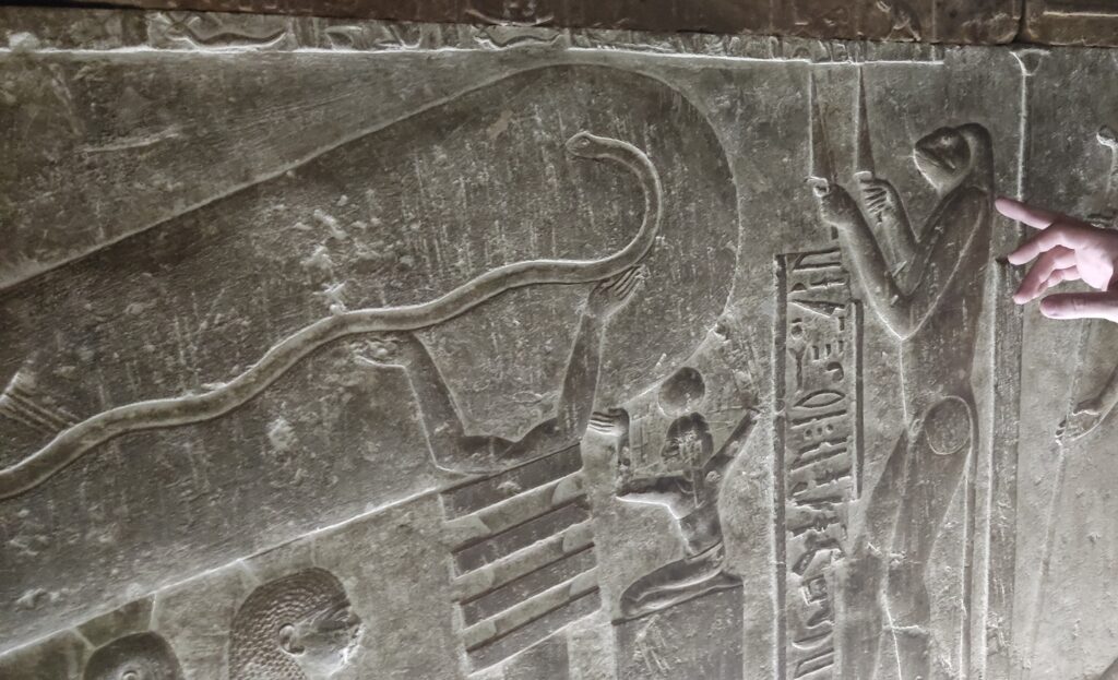 Los grabados que te encuentras son una pasada, y tuvimos mucha suerte, conseguimos ver las lámparas de Déndera, al ir solos y no haber gente, a veces los vigilantes del templo, para ganarse una propina, te enseñan lugares cerrados, y ese fue el caso.
